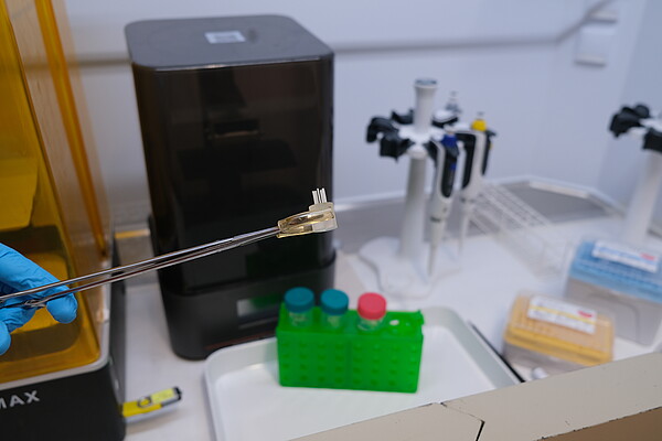 Um diese Probleme zu beheben haben wir zusammen mit der Arbeitsgruppe für Nuklearbildgebung des Instituts für Medizintechnik eine Methode entwickelt, um radioaktive Phantome herzustellen, bei denen keine Füllung mehr notwendig ist. Derzeit können wir bereits eine Vielzahl von Radionukliden für die PET-Bildgebung verwenden. Langfristig wollen die wir die Methode auf langlebige Nuklide sowie weitere Bildgebungsmodalitäten der Nuklearbildgebung ausweiten.